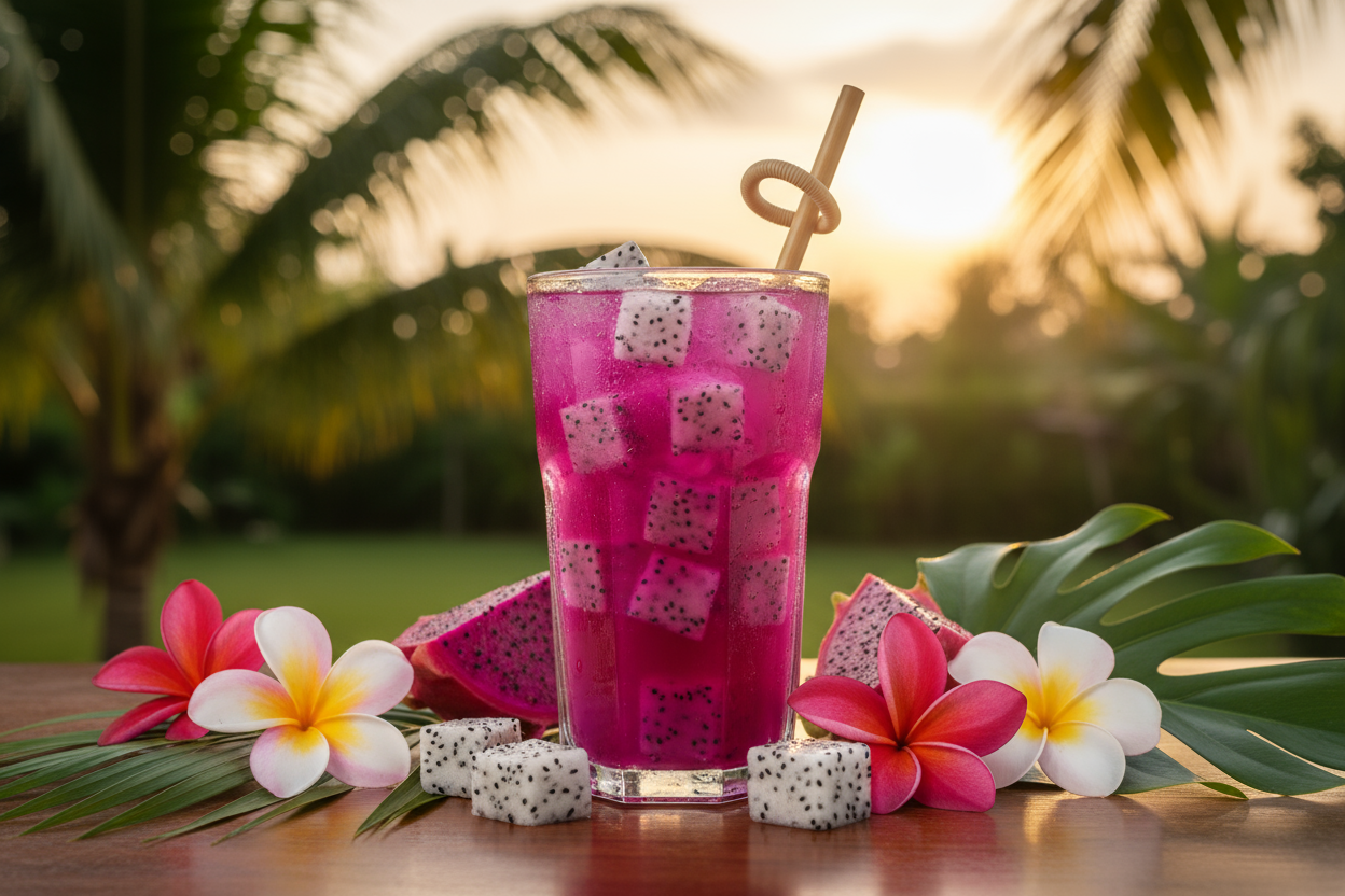Dragon fruit and mango bring tropical color and natural sweetness, while a splash of lemon keeps it light and balanced.