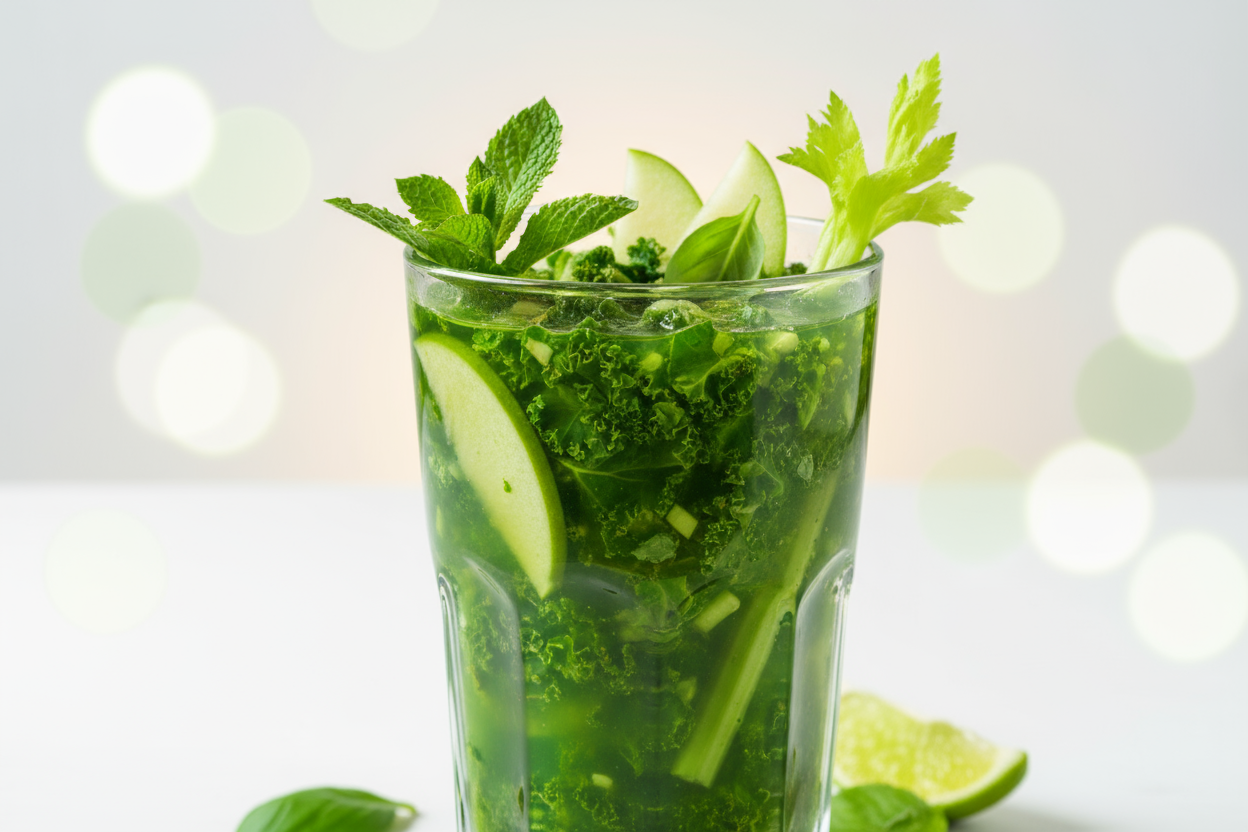Ingredients: Cucumber, Celery, Spinach, Green Apple, Lemon, Mint.